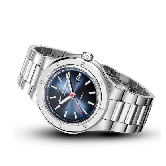 يعكس مظهر ووظيفة هذه الساعات الاندماج المنسجم بين ثقافة التميز الراسخة لماركة Bernhard H. Mayer والابتكار المعاصر. تتميز الحركة المطلية بالروديوم بوزن متأرجح مع واحدة من أجمل الزينة - " Côtes de Genève" - تضفي إحساسًا بالعمق من خلال التقاط ومعاكسة الضوء عن الحركة. الجسور الدائرية الدقيقة ذات الحواف الحلزونية والفتحات السفلية مكتملة بالمسامير التقليدية ذات اللون الأزرق الحراري ، مما يمنح الساعات مظهرًا أنيقًا مميزًا يمنح الكمال والجمال لكل من يرتديها في أي مناسبة.