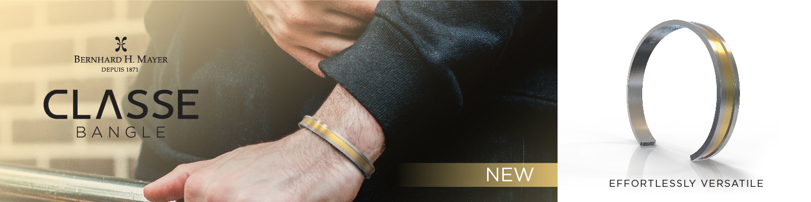 The Bernhard H. Mayer Classe Bangle is simple, yet makes a bold statement. The narrow stainless-steel cuff is brought to life with a subtle 18K gold line. Minimal, yet sophisticated. Wear it on its own or pair it with your favourite Bernhard H. Mayer watch.