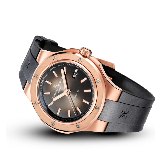 The presentation and function of the timepieces reflect the synthesis of Bernhard H. Mayer’s enduring tradition of excellence and modern innovation. The rhodium-plated movement features an oscillating weight with one of the most beautiful decorations – the “Côtes de Genève” – adding a sense of depth by catching and reflecting light off of the movement. Circular grained bridges with snailed bevels and undercuts complete with traditional heat-blued screws, giving the timepieces a distinct elegant look that will complement every wearer on any occasion.